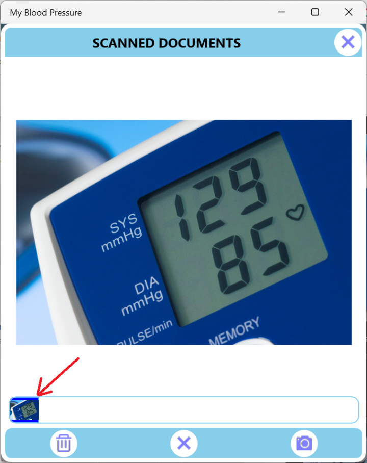 Image10 shows how to associate a document to a bp reading. As an example, i will take a photo of the reading from the bp monitor (See Image11).