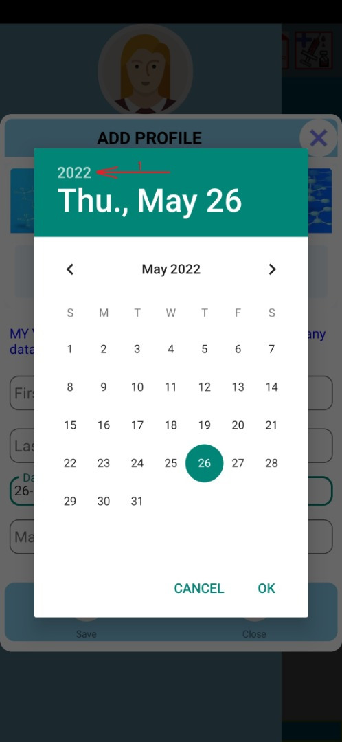 To be able enter the YEAR of your date of birth, PLEASE TAP ON (1) THEN YOU WILL BE ABLE TO SCROLL ON A LIST OF YEARS. (Image4-b).